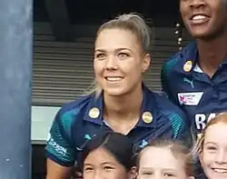 Kate Moloney is an Australian netballer who plays for the Melbourne Vixens in the Suncorp Super Netball league. As of April 2017, she is the captain of the Vixens.[2] Moloney made her domestic league netball debut for the Vixens in 2013 and was appointed captain of the team four years later.[2] She made her debut for the Australian national netball team in 2017, going on to be selected in the Australian Diamonds squad for the 2018/19 international season.[2][3] Kate has represented her country on 35 occasions.