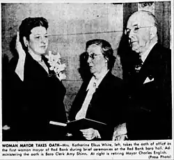 8. ^ "Mayor to be Sworn in; First Woman Will Take Office in Red Bank Tomorrow". The New York Times. 1950-12-31. p. 25. Retrieved 2009-01-04.