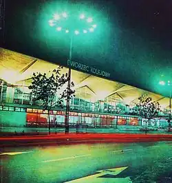 During the ensuring months, a number of the station's platforms were shut off and services redirected so that work could be performed on them, which was undertaken as series of staggered platform reconstructions, performed during phase two of the redevelopment programme.[1] The entire complex, including the adjoining Galeria Katowicka mall on Szewczyk Square, was completed by the summer of 2013, with the new main hall and its integrated (underground) bus station having entered operation by late 2012. The main hall is connected through to the platforms through a series of fixed and removable ramps.[1] The redevelopment programme entailed a total development area of around 136,000m², of which 17,350m² of the gross building area (GBA) was the railway station itself, while 8,100m² GBA was used for offices and 4,800m² for an on-site hotel.[1] During March 2018, the newly built mall was sold to Malaysian investment fund Kwasa Europe.[4]