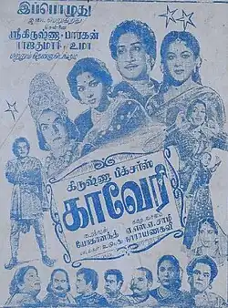 Kaveri is a 1955 Indian Tamil-language film directed by D. Yoganand, produced by Lena Chettiar and written by A. S. A. Sami. The film stars Sivaji Ganesan, Padmini and Lalitha. It was released on 12 January 1955.[1][2] This film is shot simultaneously in Telugu as Vijaya Gauri with a slightly different cast.[2]