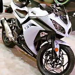 The Kawasaki Ninja 300, or EX300, is a 296 cc (18.1 cu in) Ninja series sport bike introduced by Kawasaki in 2012 for the 2013 model year. It is sold in Asia, Australia, Europe, and North America.[5][6][7] When introduced, the Ninja 300R replaced the Ninja 250R in some markets, and in others they were sold alongside each other.[8][9] When the 2018 model year Ninja 400 was introduced, it replaced the 300 in some markets.[10]