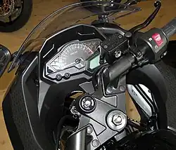 The Ninja 300 is based on the Ninja 250R, a lightweight and inexpensive sport bike in production for over three decades.[11] Like the Ninja 250R, it has a full fairing, but a wider rear tire, 140/70, instead of the 130/70 on the 250R.[12] The Ninja 300 also has 5 spoke wheels, neutral finder, and optional antilock braking system (ABS).[13][14] By comparison with the 250R, the Ninja 300 also has a slightly smaller fuel tank, taller gearing,[15] and a back-torque-limiting slipper clutch with an assist mechanism that decreases clutch lever effort.[4] Despite being a sport bike, it has comfortable ergonomics (such as windscreen effectively protecting from wind blast) which promotes commuting.[14]