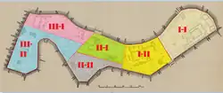 The Kazanskaya Sector was divided into three police precincts, each of which were divided into two neighbourhoods.[5] The First Neighbourhood of the First Police Precinct stretched from the north-eastern end of the island to the Nevsky Prospekt.[5] The Second Neighbourhood of the First Police Precinct included the areas of the Kazanskaya Island between Nevsky Prospekt and Gorokhovaya Street.[5]