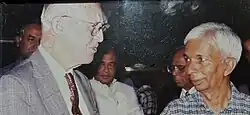 Badruddoza with Norman Borlaug at a meeting in Dhaka for high yield wheat species 1998