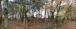 Further up Coed-y-Caerau Lane on the south side, southwest of the high point of Caer Licyn and immediately before Wentwood Cottage is an earthwork which has been recorded as "Caer Licyn Motte" (location: 51.63100,-2.88303), was scheduled as a motte-and-bailey but it's considered might actually date from the Iron Age; most of it is overgrown with trees.[22][23][9]