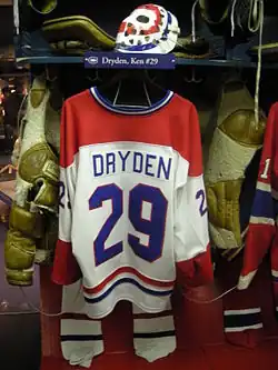 Dryden was inducted into the Hockey Hall of Fame in 1983, as soon as he was eligible. His sweater number 29 was retired by the Canadiens on January 29, 2007. He was inducted into the Ontario Sports Hall of Fame in 2011.[18]