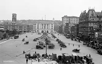 In 1903, the Federal Building was constructed facing City Hall. From 1920 to 1948, the plaza was circled by trolley tracks.[3]