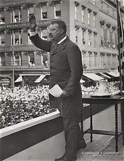 - Theodore Roosevelt (Republican President) "Trust" speech from steps of Providence City Hall toward crowd assembled on Kennedy Plaza[23][24] - 23 August 1902.