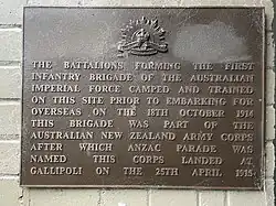 - ^ Bradley, Alice (2015). "100 years on: WWI army camps". realestate.com.au. Retrieved 13 August 2021.