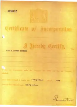 - 23 June 1937 - E.W Kent & Curwen was registered as a limited company becoming simply Kent & Curwen Ltd., trading on Silver Street in the City of London.