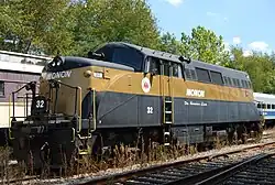 Another locomotive that dates back to the Kentucky Railway Museum's early days is Monon Route's Diesel Engine No. 32. It was painted black and gold by Monon, and kept as such, to match the school colors of Purdue University, located in West Lafayette, Indiana. It was purchased by Monon in 1948, and then acquired by the Louisville and Nashville Railroad in August 1971. It became a display at the museum in 1972.[3][18]