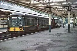 A goods station was established to the west of the station.[1] In 1865, a refreshments room opened but, by April 1875, the space it occupied was used as a first class waiting room and lavatory. In 1873, to provide better means of access between the platforms, a subway was built. A year later, a crane was installed at the east end of the up platform to ease freight loading/unloading.[1]