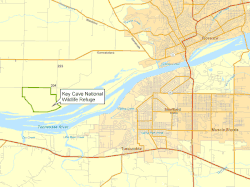Key Cave National Wildlife Refuge is a 1,060 acre (4.3 km2) National Wildlife Refuge located in northwestern Alabama, along the Tennessee River downstream from Florence, Alabama. Additional purchases are under negotiation which will increase the size of the refuge to 1,800 acres (7.3 km2).