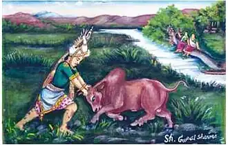 English: Khamba capturing the bull[a]