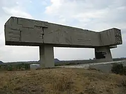 During World War II, Nazi Germany launched a massive invasion of the Soviet Union. German forces heavily shelled Krasnyi Luch, but were stopped 6 kilometres (3.7 mi) from the city, at the river Mius. Fierce battles took place on the approach to Krasnyi Luch, reportedly holding off the Germans for eight months. The Mius-Front monument has since been installed in the city, to commemorate the brave defense of the city.[7]