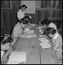 Kibei (kibei (帰米; literally "go home to America")) was a term often used in the 1940s to describe Japanese Americans born in the United States whose parents had sent them to receive their education in Japan and who had then returned to the United States. Many of them had dual citizenship. They were sent to Japan to maintain proficiency in Japanese language and cultural traditions, which was particularly important to their parents because there was strong anti-Japanese sentiment in the United States after war with Japan broke out, and they worried that they and their families might be deported back to Japan.[1] The exact number of kibei is not known—perhaps about 11,000.[2] It is said there were about 10,000 Kibei among Nisei (second-generation) Japanese Americans.[1]
