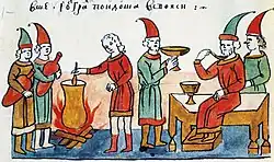 Brewing of kissel in Belgorod, miniature from the Radziwiłł Chronicle.