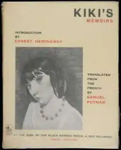 Translated from the French by Samuel Putnam, and published in Manhattan by Black Manikin Press, her memoirs are a lively account of the bohemian lifestyle typical among the artists in Paris during the 1920s, with an introduction provided by Ernest Hemingway. She tells of her encounters with Man Ray, Tsuguharu Foujita, Moïse Kisling, Jean Cocteau, Kees van Dongen, Chaïm Soutine, and others. The memoirs were first published in English in 1930, but due to their sometimes explicit content, were banned in the United States until the 1970s.