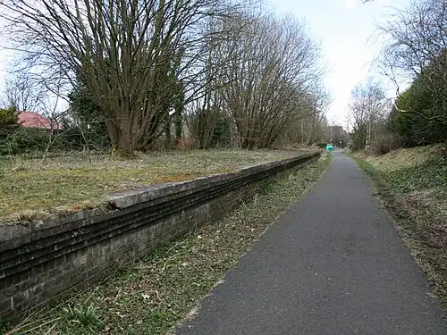 The station opened on 1 June 1905,[1] and closed to passengers on 27 June 1966.[1] The station was originally an island platform covered by an overhanging glass canopy. Access to the station, was via two glazed brick lined entrance ramps at either end of the platform; one leading to the archway under the green bridges in the village's main thoroughfare High Barholm, and the other leading down to a minor road near the Tandlehill estate. When the station was built, several of the cottages in the street had to be cleared to make way for the station entrance, and the bridges over the street.[2] The station's platform remains partially intact. However, the trackbed is now part of National Cycle Route 7. Both station passenger entrance ramps were re-opened for access to the cycle route.