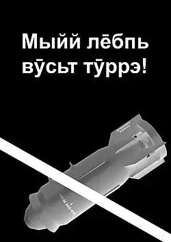 "We are against the war!" Anti-war poster in contemporary Kildin Sami orthography
