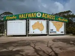 Kimba is a rural service town on the Eyre Highway at the top of Eyre Peninsula in the Australian state of South Australia. There is an 8-metre (26 ft) tall statue of a galah beside the highway, marking halfway between the east and west coasts of Australia. The Gawler Ranges are north of the highway near the town.