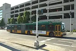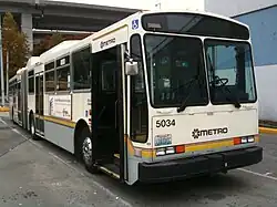 In 1978, Metro was the first large transit agency to order high-capacity articulated buses (buses with a rotating joint).[11] Today, King County Metro has one of the largest articulated fleets in North America (second only to MTA New York City Transit) and articulated buses account for about 42% of the agency's fleet.[12]