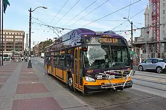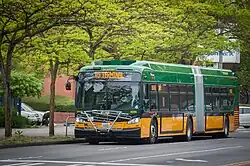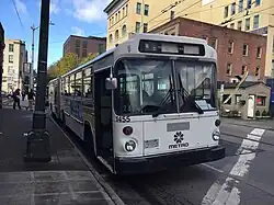Metro's trolleybus fleet consists of 174 entirely low-floor New Flyer Xcelsior coaches.[20] Of the total, 110 are 40-foot (12 m) vehicles (model XT40) and 64 are 60-foot (18 m), articulated buses (model XT60).[20] The buses include an auxiliary power unit, to allow them to operate off-wire for up to 3 miles (4.8 km).
