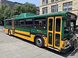 King County Metro is the local public transit operator in Seattle and King County, Washington, United States. As of 2019, Metro operates the seventh largest fleet of buses in the United States, with a total of 1,583 buses.[1] The agency's buses traveled a total of 53 million miles (85,000,000 km) and transported over 123 million passengers in 2019.[2][3]
