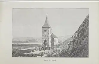 The Interior Ministry wanted an independent investigation of the circumstances and sent Lieutenant Commander Georg Heyerdahl (1798–1853) north to familiarize themselves with the case. Heyerdahl did not share the county Governor's views on which solution. He proposed instead to erect a chapel at Grense Jakobselv. A Lutheran chapel would be an indisputable boundary marking, such as the Russian Orthodox chapel in Boris Gleb that had been used for border demarcation in 1826. In 1865 it was decided to build a chapel and parsonage at the border. In the summer of 1869, the new chapel was built and on 26 September the same year, the chapel was consecrated by Waldemar Hvoslef (1825–1906), Bishop of the Diocese of Bjørgvin.[5][6][7]
