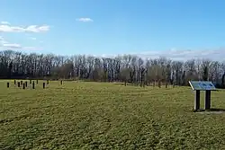 In the 1970s a Roman fortlet was located and two timber buildings. A short section of the Antonine rampart has been reconstructed.[60] Kinneil has the only visible example of an Antonine fortlet available today. Among the finds at the site a Roman horse harness loop was found.[61] A digital reconstruction of the fortlet has been created.[62]