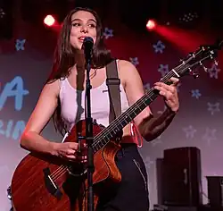 On February 24, 2018, Kosarin announced her debut single, "Spy",[28] which was released on March 16, 2018. On January 11, 2019, Kosarin released her next single, "Vinyl", which was accompanied by a music video.[29] This was followed by three subsequent singles, "Love Me Like You Hate Me", "47 Hours" and "Take This Outside".[30][31][32] Her debut album, Off Brand, was released on April 10, 2019.[33][34] In July 2019, Kosarin was set to embark on a headline tour across the United Kingdom to promote the release of Off Brand, but this was later cancelled due to "scheduling conflicts".[35][36] On November 8, 2019, Kosarin released her next single, "Simple", a collaboration with American DJ Carneyval.[37] Kosarin also has a YouTube channel where she posts music covers and songs.[38] On July 15, 2020, she independently released an extended play, Songbird.[39] In March 2022, it was announced that Kosarin had been signed to Republic Records. She released her debut major-label single, "Mood Ring", on March 11, 2022.[2]