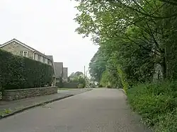Junction of North Wood Park and North Road, with remains of the former Kirkburton station at the right