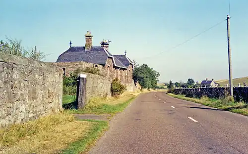 The station opened on 5 September 1887 by the North Eastern Railway. It was situated on the north side of the B6351 approximately 1/4 mile from the village centre. The station closed to passengers on 22 September 1930 and to goods traffic on 30 March 1953, which was earlier than the northern part of the branch (in 1965).[1] The station consisted of one passenger platform, as well as a marshalling yard for local freight. The bridge crossing the College Burn, a short way west of the station was damaged in floods in 1948, along with a bridge that was washed away near Mindrum.[2]