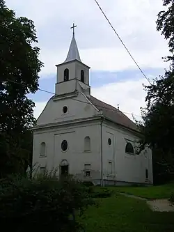 Until the end of World War II, the inhabitants' majority was Danube Swabian, also called locally as Stifolder, because their ancestors arrived in the 17th and 18th centuries from Fulda (district).[4] Most of the former German settlers were expelled to Allied-occupied Germany and Allied-occupied Austria in 1945–1948, pursuant to the Potsdam Agreement.[5] Only a few Germans of Hungary live there, the majority today are the descendants of Hungarians from the Czechoslovak–Hungarian population exchange. They got the houses of the former Danube Swabian inhabitants.
