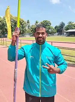 Kishore Kumar Jena (born 6 September 1995) is an Indian javelin thrower.[2] He rose to prominence after winning the silver medal in the men's javelin event at the 2022 Asian Games.[3] Jena represented India at the 2024 Paris Olympics, competing in the men's javelin event.[4]