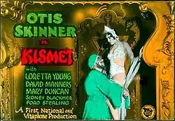 Kismet is a 1930 American pre-Code costume drama film photographed entirely in an early widescreen process using 65mm film that Warner Bros. called Vitascope. The film, now considered lost,[2] was based on Edward Knoblock's play Kismet, and was previously filmed as a silent film in 1920 which also starred Otis Skinner.