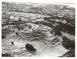 - ^ a b Fox, Aileen (1977). "Pa of the Auckland Isthmus: An Archaeological Analysis". Records of the Auckland Institute and Museum. 14: 1–24. ISSN 0067-0464. JSTOR 42906245. Wikidata Q58677038.