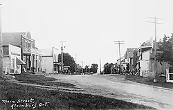The community began in 1848 when John Nicholas Klein (1825–1854), a German-Canadian settler built a flour mill along the Humber River's west branch in the valley in 1847. A settlement soon resulted at the bottom of the hill, originally named "Kleinsburg" (after John Klein, and "berg" being German for hilly country or hill). The village at the top of the hill was known as "Mount Vernon", but by 1890 both became known as Kleinburg (sometimes shown as Klineburg). The Howland family later took over the flour mill, and added a sawmill and store.[4] Over time, more and more businesses sprung up to support the mills, notably the Howland's flour mill, which was the largest between Barrie and Toronto and attracted farmers for miles.[5] A community developed in town, with hotels, merchant shops, schools and churches.