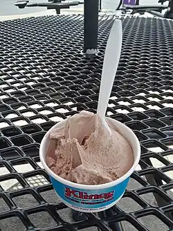 Kline's Dairy Bar is a small ice cream shop with four locations in Virginia, United States. It was established in 1943 in downtown Harrisonburg in the Klines' family home. After the death of owner John Kline, it was bought out and expanded to three other locations. It uses an old fashioned way of production called continuous freeze instead of the newer and more popular soft serve method. This means that there is less air added into the ice cream as it freezes, making for a denser product more like old-fashioned frozen custard. Since this means of production takes more time, the shops only make three flavors a week. They update their customers on the flavors using their website and their Twitter account.