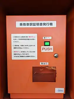 There are no turnstiles or other barriers in this station. Instead a PASMO-compatible ticket gate which does not have gate function is prepared for PASMO or smart Card train ticket passengers. Conversely, for passengers who do not have a PASMO or smart card train ticket, a machine is available to issue a certificate of the boarding and alighting station.