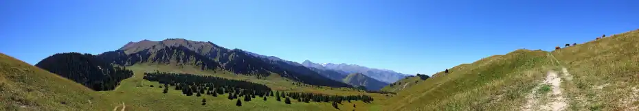 To climb the Kok-Zhaylau is necessary to make an ascent on the Northern watershed of the gorge. This route is very popular due to the fact that during one day from the Kok-Zhailau plateau, you can make different hikes: 1) on the Terisbutak river, make a descent to The Big Almaty gorge[5]– to the city along the "Observatorsky comb"; 2) along the Kamenskiy ridge to the health resort "AK Kain" through the Maloalmatinsky and Kamenskoye gorges, etc.