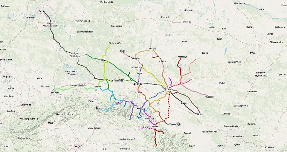 4. ^ "Rozkład, Bilety". Koleje Dolnośląskie (in Polish). Retrieved 2022-07-04.