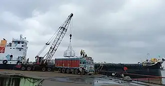 ![]() Hard coke is being loaded on the Bangladesh bound ship at Garden Reach Jetty–2 of the Kolkata Inland Port | |