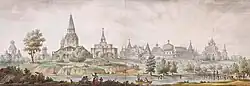Panorama of Kolomenskoye, 18th century. Watercolor from the original drawing of Giacomo Quarenghi