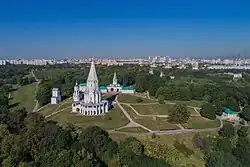Kolomenskoye (Russian: Коло́менское) is a former royal estate situated several kilometers to the southeast of the city center of Moscow, Russia, on the ancient road leading to the town of Kolomna (hence the name). The 390 hectare scenic area overlooks the steep banks of the Moskva River. It became a part of Moscow in the 1960s.
