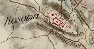 ![]() Kozova Castle on the map by Friedrich von Mieg, 18th century | |