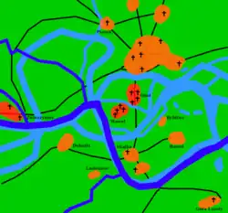 Kraków was almost entirely destroyed during the first Mongol invasion of Poland in 1241, after the Polish attempt to repulse the invaders had been crushed in the Battle of Chmielnik. Kraków was rebuilt in 1257, in a form which was practically unaltered, and received self-government city rights from the king based on the Magdeburg Law, attracting mostly German-speaking burghers. In 1259, the city was again ravaged by the Mongols in the second Mongol invasion of Poland, 18 years after the first raid. A third attack, though unsuccessful, followed in 1287. The year 1311 saw the Rebellion of wójt Albert against Polish High Duke Władysław I. It involved the mostly German-speaking burghers of Kraków who, as a result, were massacred.[9] In the aftermath, Kraków's burgher class was gradually re-Polonized, and Polish burghers rose from a minority to a majority.[10]