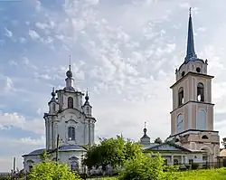 The town of Kropivna was first documented in the 1389 testament of Dmitry Donskoy and remained the seat of an uyezd until the October Revolution. It was relocated several times, sacked by Ivan Zarutsky in 1613, and occupied by other rebels during the Time of Troubles. Places of interest include the ruins of the Trinity Monastery and an Orthodox cathedral dating from the mid-18th century.