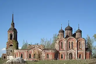 The date when the church was built in Krasno is not known. However, the records indicate that a wooden church already existed there in the 17th century. The 1676 tax books of the Ryazan eparchy describe the village as having the Saint Nicholas Church and several homesteads. The same book also states that a number of villages were included in the Krasno parish.