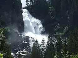 Krimml is known for the Krimml Waterfalls which are a popular tourist destination. With a total drop of about 380 m (1,250 ft) these waterfalls are among Europe's highest. Also, the source of the Salzach river is located north of Krimml, at an elevation of 2,300 m (7,500 ft) above sea level.